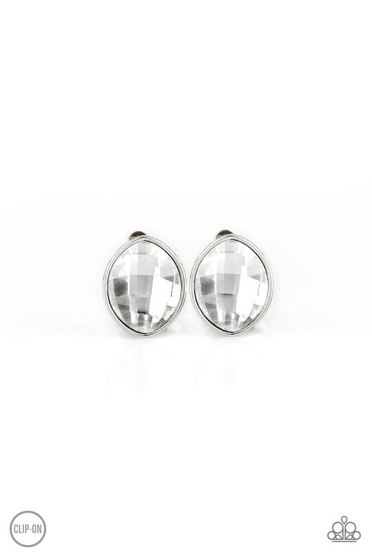 Movie Star Sparkle - White Clip-On Earrings - Paparazzi Accessories