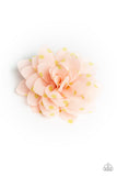 Dotted in dainty green polka dots, peach chiffon petals gather into an airy flower for a seasonal look. Features a standard hair clip on the back.