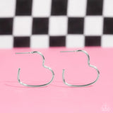 A deceptively simple hoop of silver curves around the ear into a heart-shaped frame. Its curls are complemented by its high sheen finish, leaving a lasting impression. Earring attaches to a standard post fitting. Hoop measures approximately 1" in diameter.