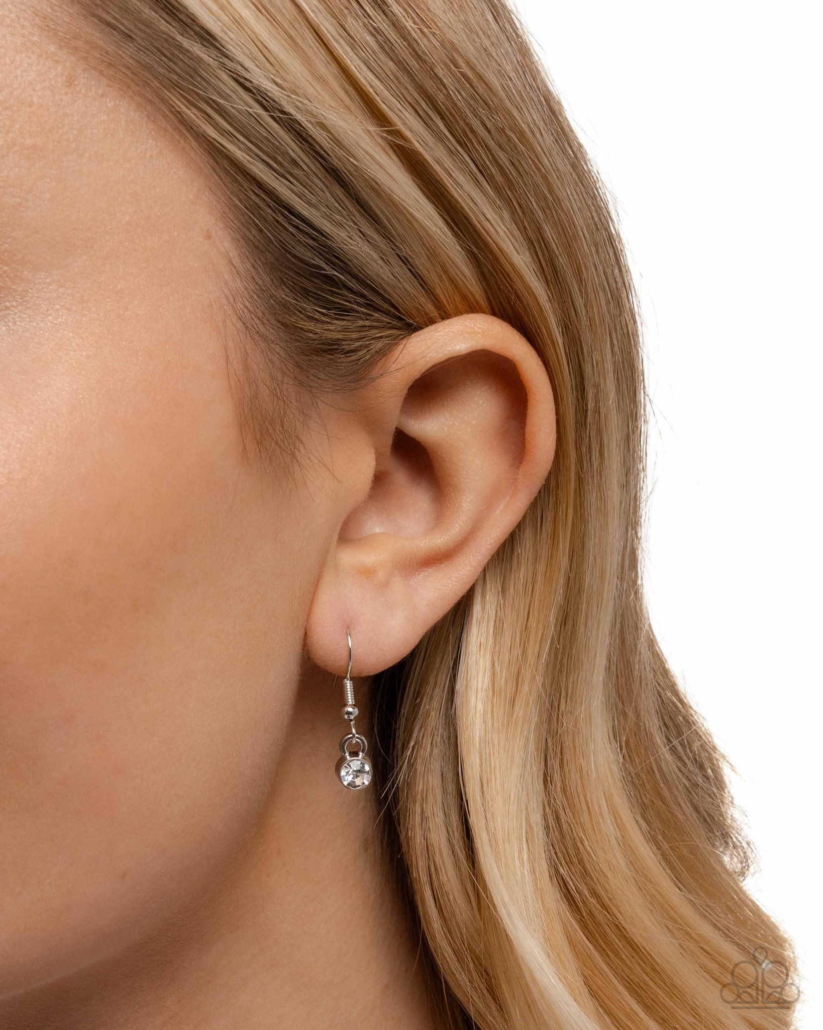 Modeled after a wedding ring, a collection of dainty emerald-cut white gems forms into a princess cut, crowning a silver ring dusted in dainty white rhinestones below the neckline along a silver snake chain for a blissfully blingy statement. Features an adjustable clasp closure.