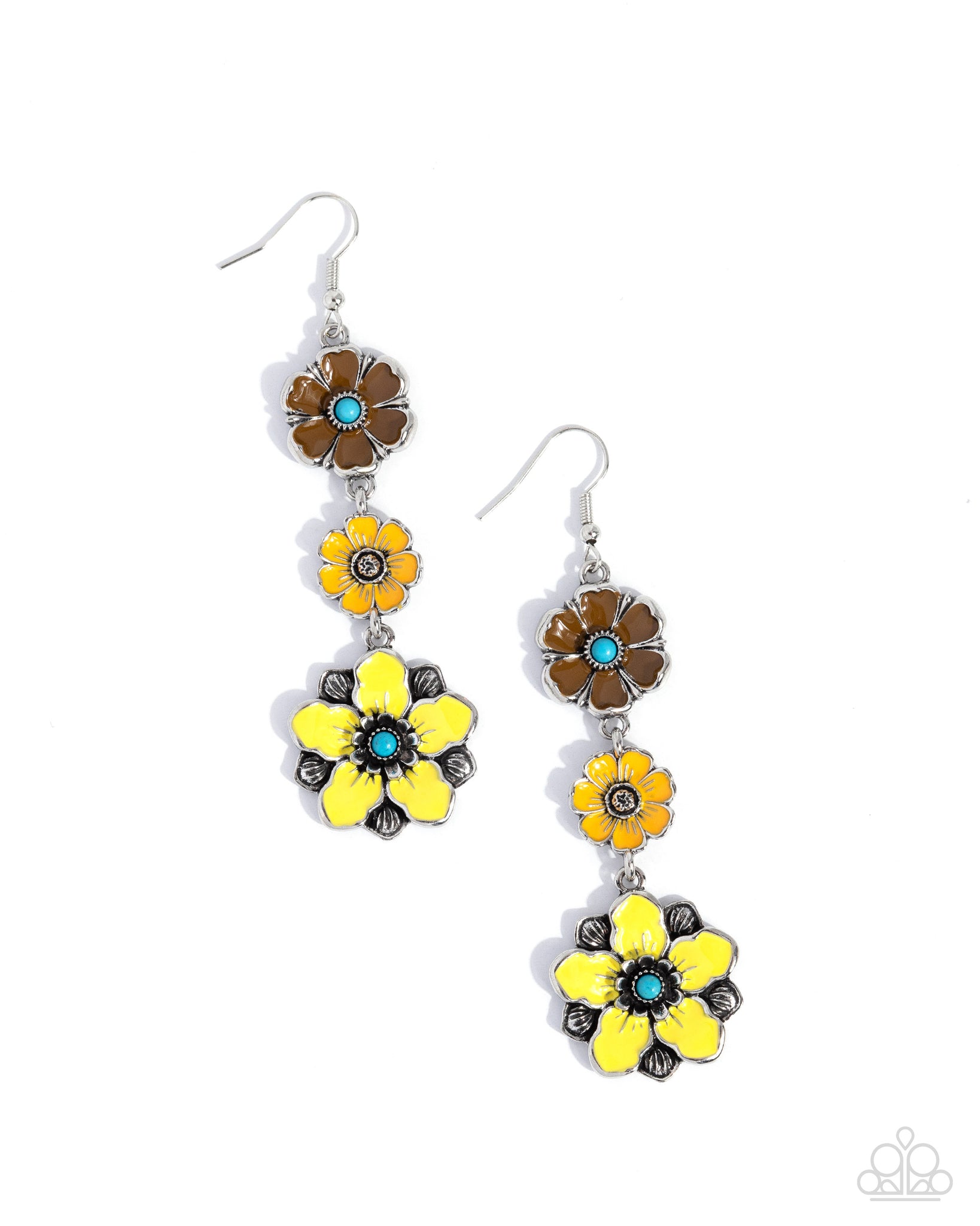 Floral Flock - Yellow Earrings - Paparazzi Accessories