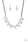 Encased in sleek gunmetal fittings, a regal chain of oversized white emerald style gems link below the collar for a timeless finish. Features an adjustable clasp closure.