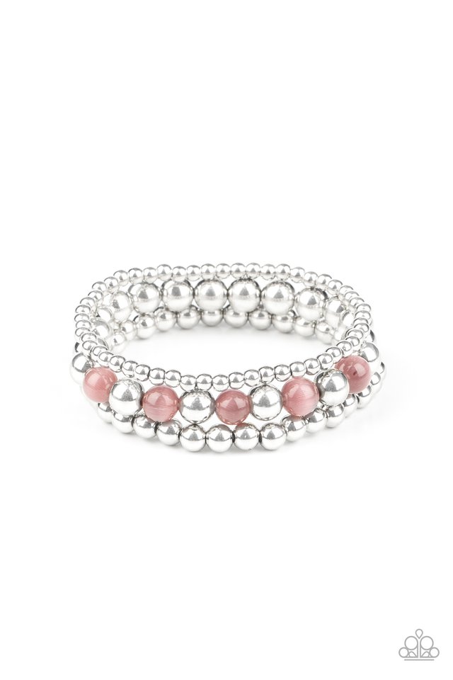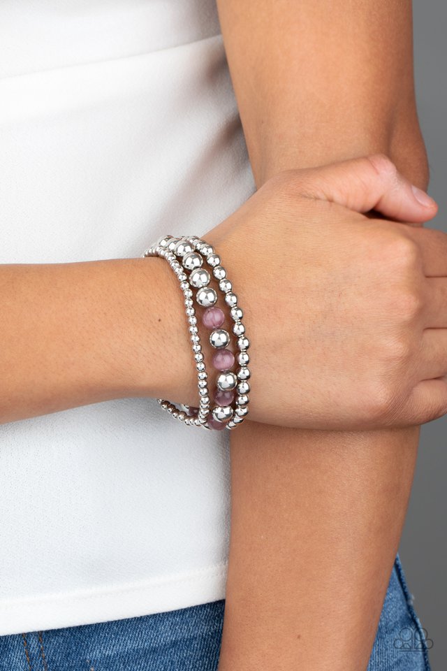 Infused with glowing purple moonstones, shiny silver beads are threaded along stretchy bands for a whimsical look. Sold as one individual bracelet.