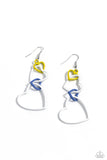 A collection of airy, heart-shaped silhouettes in varying sizes and High Visibility, white, and Persian Jewel hues interlock and fall from the ear in a haphazard pattern, creating a sleek romantic cascade. Earring attaches to a standard fishhook fitting.