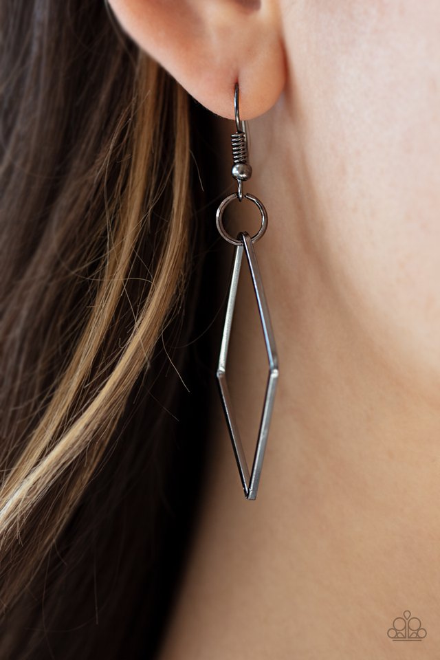 A collection of interlocking diamond-shaped frames give way to rows of mismatched gunmetal chains, creating edgy layers across the chest. Features an adjustable clasp closure. Sold as one individual necklace. Includes one pair of matching earrings.