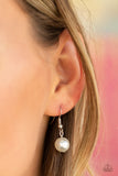 Dotted with a white pearl center, a floral silver pendant radiating with glassy white and white rhinestones swings from the bottom of a lengthened silver chain. A shimmery silver tassel swings from the bottom of the glittery pendant for a fabulous finish. Features an adjustable clasp closure.