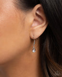 Connecting to a silver paperclip chain, a collection of rounded silver square links with circular silhouetted interiors connect below the neckline for a mismatched display. Featuring a metallic ribbed border, a white rhinestone-embellished silver heart pendant swings below the squared links for a heartfelt finish. Features an adjustable clasp closure.