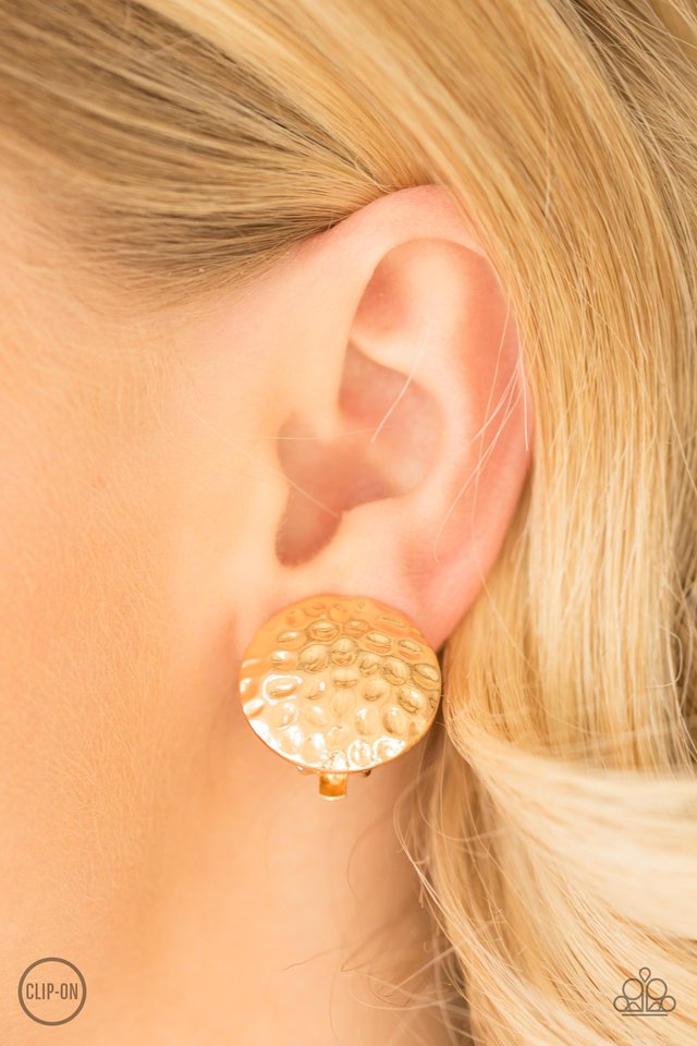 Hold The SHINE - Gold Clip-On Earrings - Paparazzi Accessories