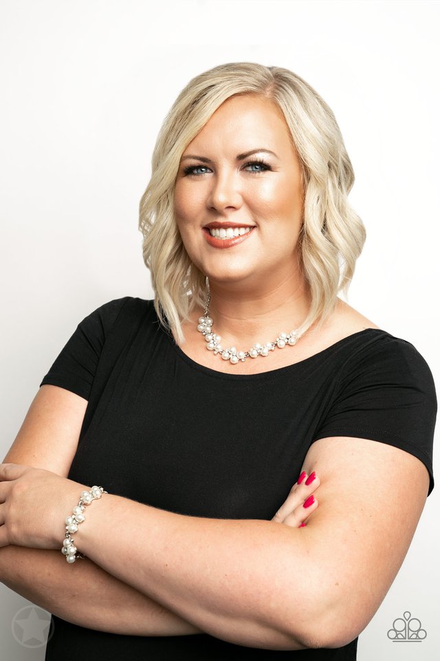 Small clusters of shimmery white pearls are dusted with sparkling rhinestones, creating a romantic timeless design. Features an adjustable clasp closure.