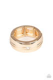 Dotted with a dainty white rhinestone center, a shiny gold band is stamped in a linear rows for a casual finish. Features a stretchy band for a flexible fit.