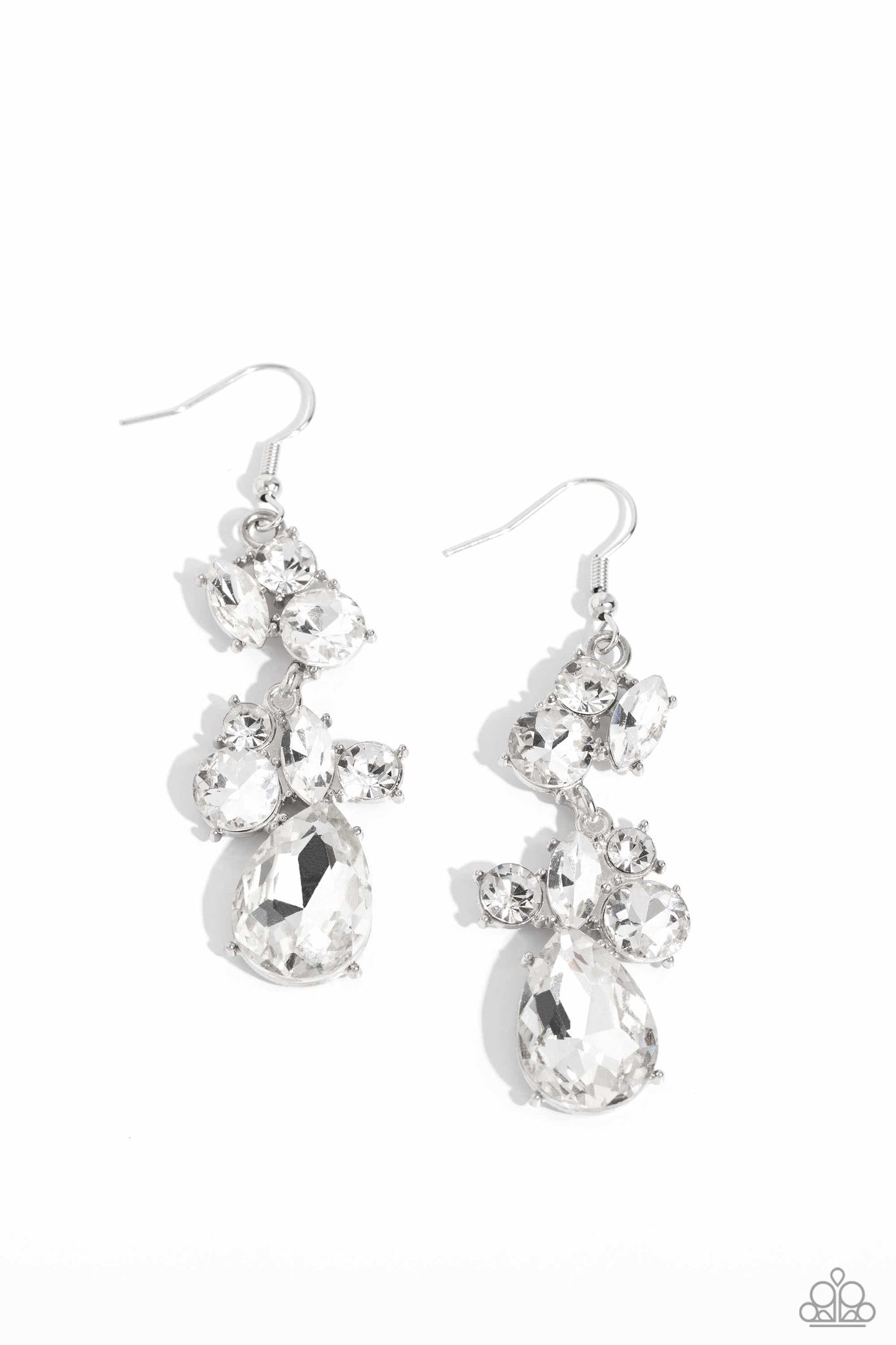 Rhinestone Reveler - White Earrings - Paparazzi Accessories
