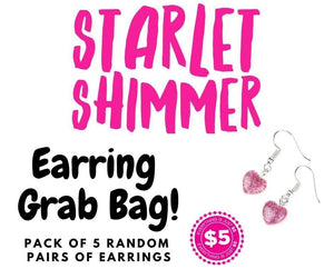Sold as a set of 5 kids earrings. Each grab bag will contain random colors & styles.