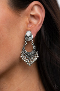 Summery Gardens - White Clip-On Earrings - Paparazzi Accessories