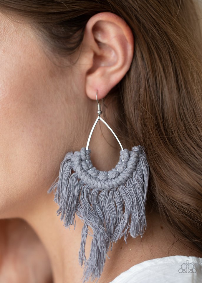 Wanna Piece Of MACRAME? - Silver Earrings - Paparazzi Accessories