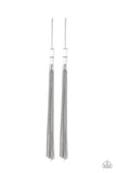 Dainty silver accents and round white stone beads are threaded along a metallic rod, giving way to a shimmery silver chain tassel for a wanderlust finish. Earring attaches to a standard post fitting. Sold as one pair of post earrings.